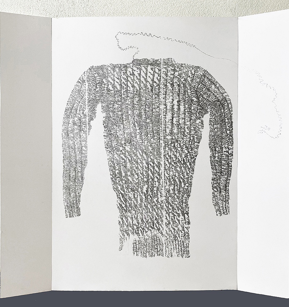 AlleMalerei & ZeichnungInstallation & Objekt Zurück zur Übersicht Zwischen-Welt Donnerstag, 23. April 2020 In Bergen schön, Zeichnung doppelseitig, Triptychon, Graphit auf Passpartoutkarton, 110 x 105 cm, 2020 In den Maschen I, Zeichnung, Graphit auf Passpartoutkarton, 60 x 160 cm, 2019 In den Maschen II, Zeichnung, Graphit auf Passpartoutkarton, 60 x 160 cm, 2019 Was bleibt, Zeichnung, Graphit auf Passpartoutkarton, 75 x 160 cm, 2019/ 20